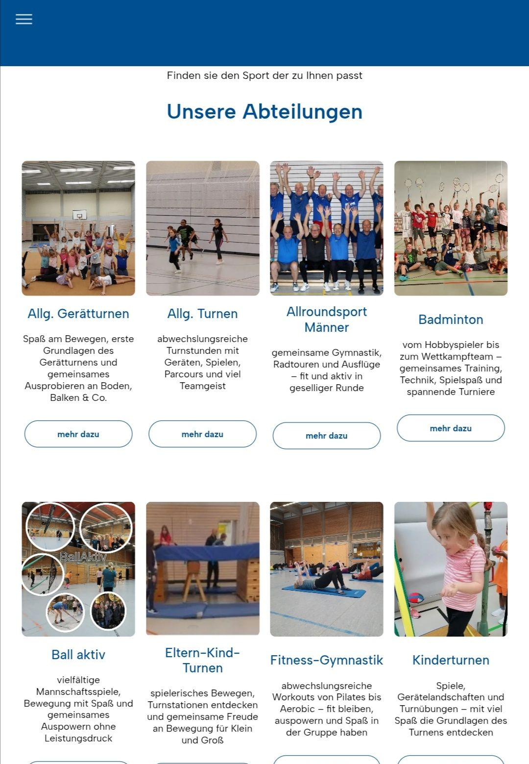 Ertappen Sie sich auch manchmal dabei, wie Sie kurz vor Feierabend online lustige Tiervideos anschauen, anstatt Ihre Geschäftsemails auf der Arbeit zu beantworten? Oder googeln Sie aus purer Langeweile die "Florida Man Birthday Challenge" oder machen den "Welches Brot bin ich?"-Onlinetest? Da kann ich Sie in zweierlei Hinsicht beruhigen. Erstens sind Sie damit sicherlich nicht allein. Zweitens habe ich direkt einen besseren Alternativvorschlag - unsere TV-Homepage. Ja, richtig gelesen! Unsere Homepage hat eine "Generalüberholung" bekommen und erstrahlt nun in neuem Glanz (und vor allem mit aktualisierten Angaben). Zugegeben - unsre Website wird Ihnen nicht sagen können, welche Brotsorte Sie sind, dafür welche Abteilung im TV passend für Sie ist. Mal wieder Rückenschmerzen, weil Sie in einer falschen Position vor dem Fernseher eingeschlafen sind? - Kommen Sie doch mal ins Rücken-Fit. Alleine Joggen ist langweilig und Sie brauchen jemanden, mit dem Sie Ihren inneren Schweinehund überwinden können? - Die Freizeitsport-Gruppe freut sich auf Sie. Für jedes Alter, für jedes Fitnesslevel und jede Vorliebe ist was dabei.